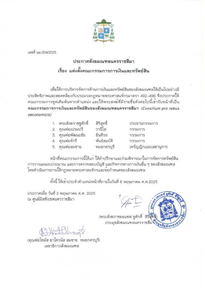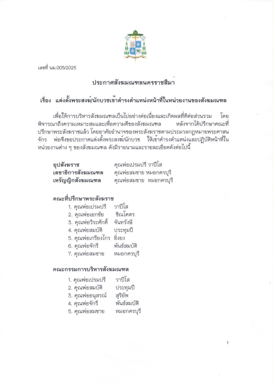 โทรศัพท์ 044 274 535044 256 268 โทรสาร : 044 241 840 email : koratmission@gmail.com