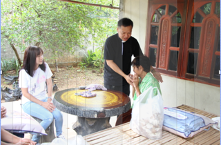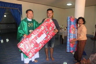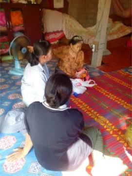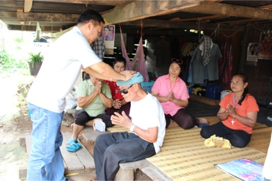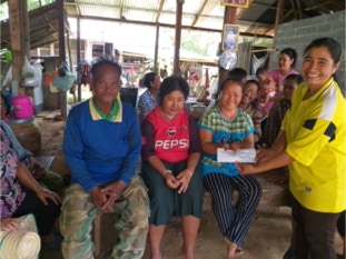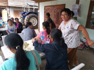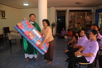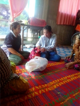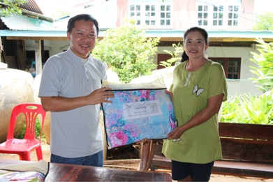 บ้านหนองพลวง อำเภอประทาย จังหวัดนครราชสีมา ที่เจ็บป่วย ไม่สามารถมาร่วมพิธีมิสซาที่วัดได้ จำนวน 4 ครอบครัว เพื่อเสริมกำลังใจในยามเจ็บป่วย