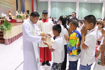 วันอาทิตย์ที่ 7 เมษายน 2019 เวลา 08.30 น. พิธีมิสซาโปรดศีลศักดิ์สิทธิ์ของเด็กในค่ายคำสอนของสังฆมณฑลนครราชสีมา ณ โบสถ์แม่พระคนกลางแจกจ่ายพระหรรษทาน โคกปราสาท โดยมีพระสังฆราช ยอแซฟ ชูศักดิ์ สิริสุทธิ์ ประมุขสังฆมณฑลนครราชสีมา เป็นประธานในพิธี.