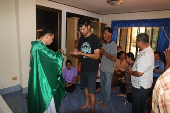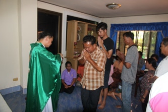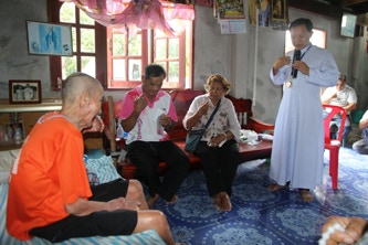 วันพุธที่ 3 ตุลาคม 2018 คุณพ่อสุเทพ วนพงศ์ทิพากร เจ้าอาวาสวัดนักบุญเทเรซา บ้านโนนแก้ว ,วัดนักบุญเปโตร บ้านโนนแฝก และ วัดนักบุญยอแซฟ บ้านโนนงิ้ว ได้ถวายมิสซาที่บ้านดงหลบ อ.ลำทเมนชัย จ.นครราชสีมา และได้ส่งศีลผู้สูงอายุพี่น้องคริสตชนที่อาศัยอยู่ห่างใกลวัด เพื่อให้กำลังใจในการใช้ชีวิตประจำวัน และร่วมกันภาวนา เพื่อเสริมจิตใจให้เข้มแข็ง ให้มีกำลังใจในการดำเนินชีวิต โดยมีหน่วยงานแพร่ธรรม พร้อมด้วยอาสาสมัครแพร่ธรรม จากบ้านโนนแก้ว บ้านโนนแฝก บ้านโนนงิ้ว จำนวน 24 ท่าน ลงพื้นที่ติดตามเยี่ยมเยียนพี่น้องคริสตชนในครั้งนี้