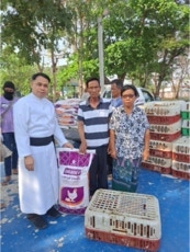 วันที่ 7 มีนาคม 2564 แผนกผู้สูงอายุ จัดโครงการช่วยเหลือผู้สูงอายุยากไร้ ในเขตวัดนักบุญยอแซฟกรรมกร บ้านหนองห่าง อ.บัวลาย จ.นครราชสีมา โอกาสนี้คุณพ่ออัมรินทร์ พันธ์วิไล เจ้าอาวาสได้ให้เกียรติมอบแม่ไก่และอาหารเลี้ยงไก่ไข่เพื่อรับประทานในครัวเรือน