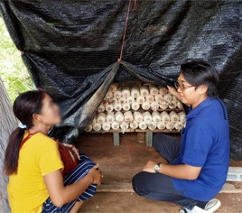 เจ้าหน้าที่ฝ่ายฟื้นฟูสังคมมนุษย์ สังฆมณฑลนครราชสีมา แผนกผู้ป่วยเอดส์และผู้พิการ ลงพื้นที่เยี่ยมเยือนติดตามงานส่งเสริมอาชีพด้านความเป็นอยู่หลังมอบเห็ดนางฟ้าให้ไปเพาะเมื่อปลายเดือนสิงหาคม กลุ่มผู้ติดเชื้อแจ้งว่า หลังเห็ดออกดอก ได้แบ่งไว้ทาน ส่วนที่เหลือได้นำไปแบ่งขายถุงละ 20 บาท 1 ถุง ใส่เห็ด 2 ขีด ขายดีมากในหมู่บ้าน มีความสนใจจะสั่งเห็ดเพิ่ม ทั้งนี้ในวันเดียวกันทางฝ่ายฟื้นฟูฯ ได้มอบไก่ไข่พร้อมหัวอาหาร อีก 25 ตัว อาหาร 10 กระสอบ