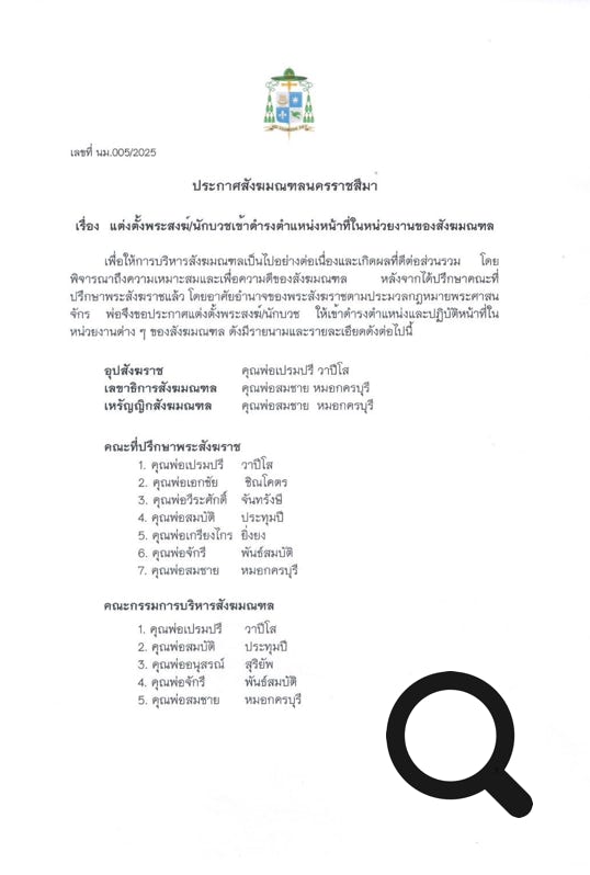 สำนักพระสังฆราชคาทอลิก สังฆมณฑลนครราชสีมา เลขที่ 387 ถนนสุรนารี อำเภอเมือง จังหวัดนครราชสีมา 30000