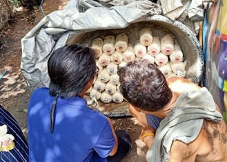 เจ้าหน้าที่ฝ่ายฟื้นฟูสังคมมนุษย์ สังฆมณฑลนครราชสีมา แผนกผู้ป่วยเอดส์และผู้พิการ ลงพื้นที่เยี่ยมเยือนติดตามงานส่งเสริมอาชีพด้านความเป็นอยู่หลังมอบเห็ดนางฟ้าให้ไปเพาะเมื่อปลายเดือนสิงหาคม กลุ่มผู้ติดเชื้อแจ้งว่า หลังเห็ดออกดอก ได้แบ่งไว้ทาน ส่วนที่เหลือได้นำไปแบ่งขายถุงละ 20 บาท 1 ถุง ใส่เห็ด 2 ขีด ขายดีมากในหมู่บ้าน มีความสนใจจะสั่งเห็ดเพิ่ม ทั้งนี้ในวันเดียวกันทางฝ่ายฟื้นฟูฯ ได้มอบไก่ไข่พร้อมหัวอาหาร อีก 25 ตัว อาหาร 10 กระสอบ